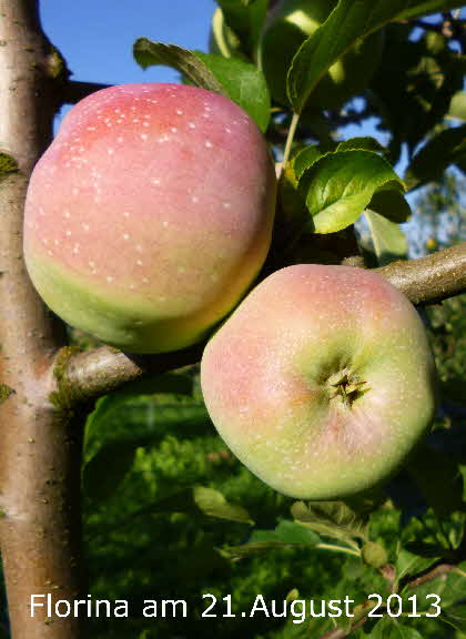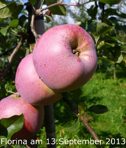 diploid, guter Pollenspender, Blütenansatz mittel, schwankt stark / mittelspät, gering frostempfindlich (2011 Mitte April / 2012 ab 21. 04. / 2013 ab 02.05. / 2014 ab 04. 04. / 2015 ab 25.04. / 2017 ab 08.04l) / Elstar, Pilot, Pinova, ..... |